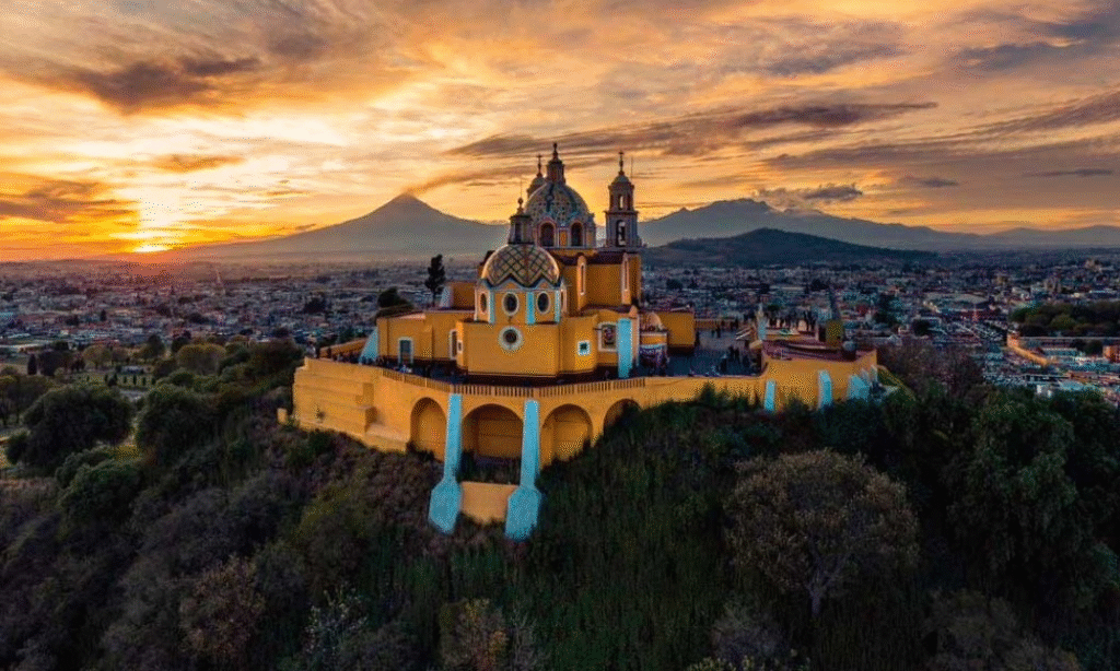 El Santuario de la Virgen de los Remedios, uno de los lugares más emblemáticos de Cholula, Puebla, se encuentra en la cima de la Gran Pirámide, la base piramidal más grande del mundo.